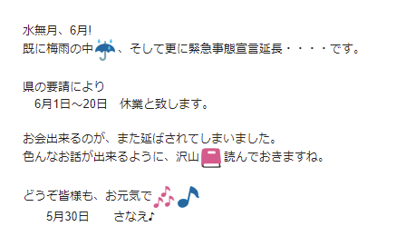 お知らせです。(県の緊急事態延長の要請を受けて)