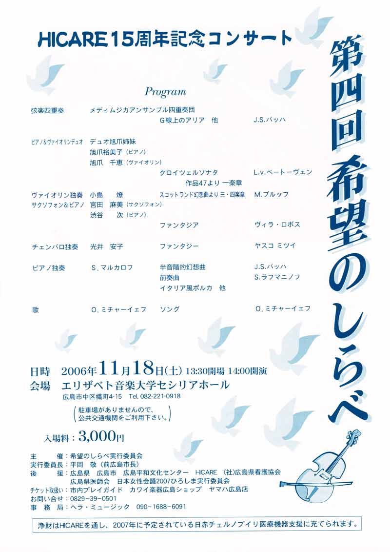 14F00` | HICARE15Žü”N‹L”OƒRƒ“ƒT[ƒg@‘æŽl‰ñŠó–]‚Ì‚µ‚ç‚×  | |