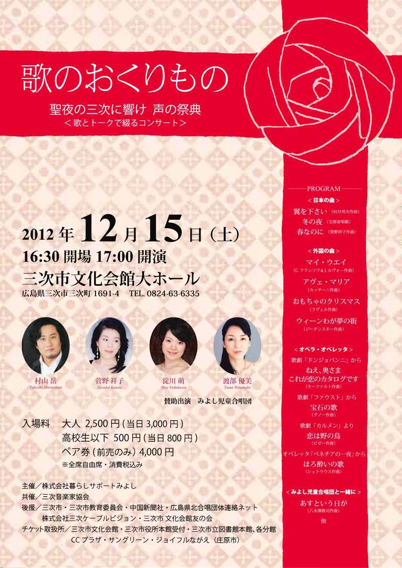 17:00〜 | 歌のおくりもの 聖夜の三次に響け 声の祭典  | |
