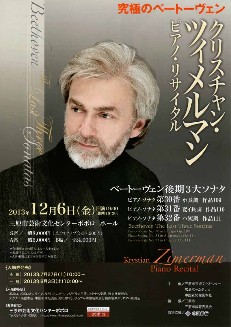 19:00〜 | クリスチャン・ツィメルマン ピアノ・リサイタル(6日の振替公演)  | |
