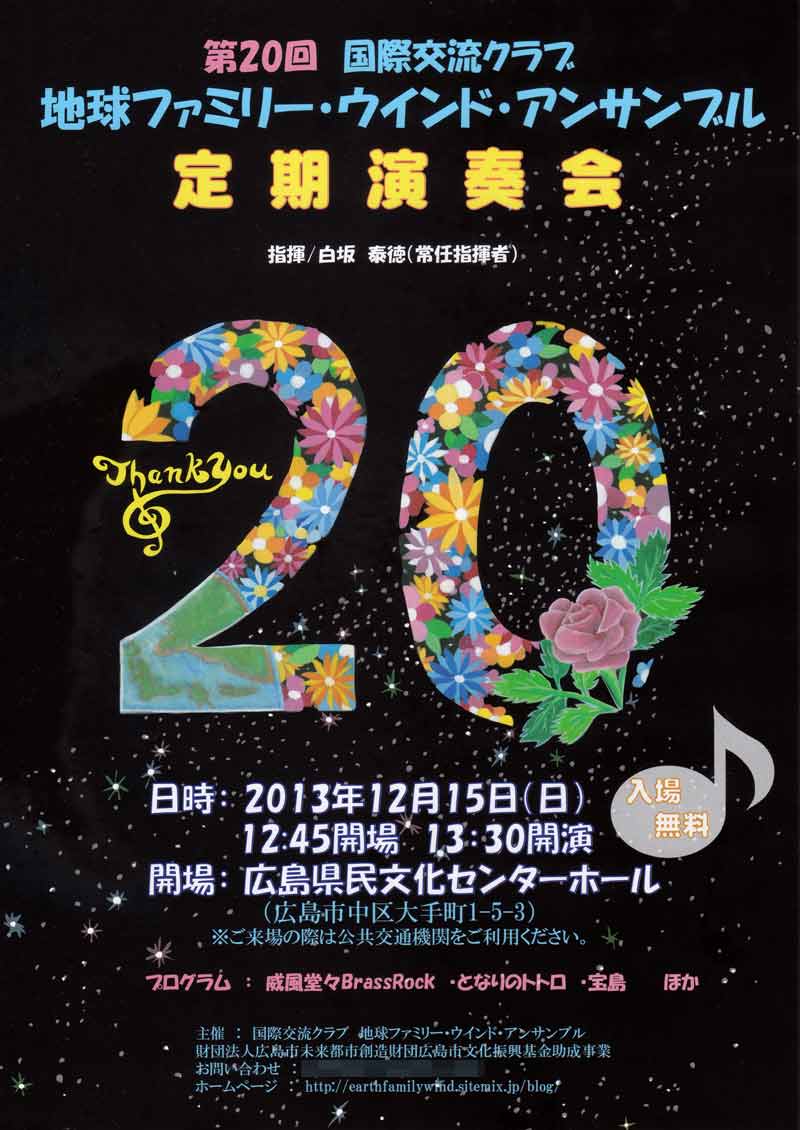 13:30〜 | 第20回 国際交流クラブ 地球ファミリー・ウインド・アンサンブル定期演奏会  | |