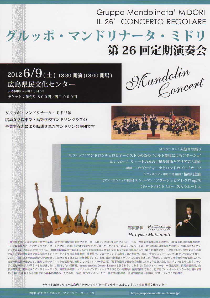 18:00〜 | グルッポ・マンドリータ・ミドリ 第26回定期演奏会  | |