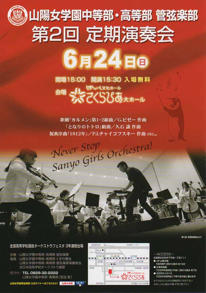 15:30〜 | 山陽女学園中等部・高等部管弦楽部 第2回定期演奏会  | |