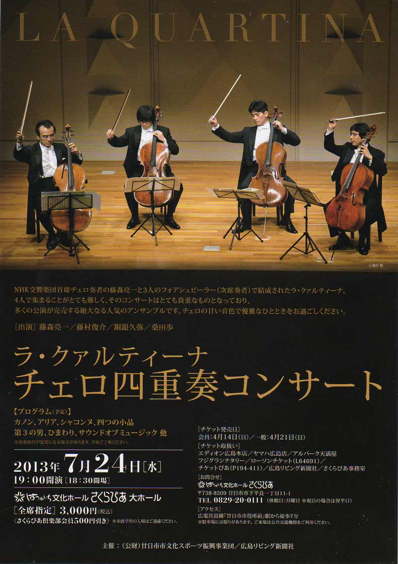 19:00〜 | ラ・クァルティーナ チェロ四重奏コンサート  | |